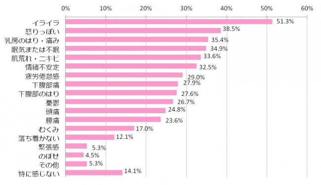 PMSで起こるトラブルには体に対するものと、心に対するものが多いのですが、特に負担が大きいのが心理的なトラブルです。